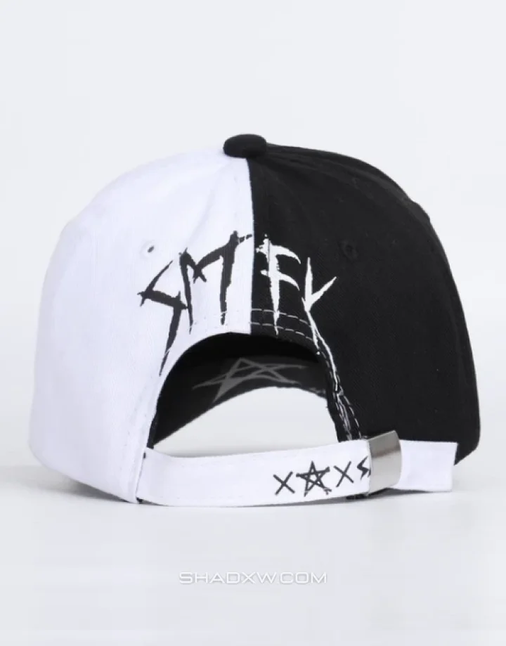 This two-tone cap printed with symbols is ideal to perfect your streetwear, techwear look. Wear this black and white cap with a unique and original design to complete your outfit. Its visor protects you from the sun as well as from the rain.