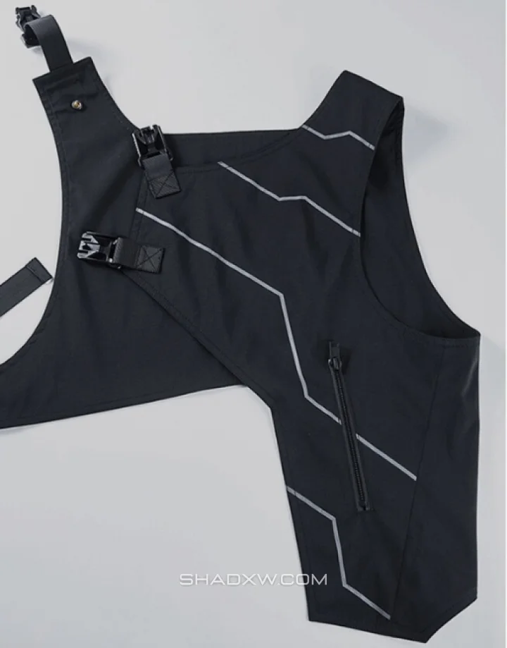 This reflective jacket is a techwear staple. It has reflective tape on the chest. Once in the dark, the reflective ability of the jacket lights you up with a dazzling flash, creating a splendid contrast with everything around you. This lightweight jacket allows you to be visible in the dark, making it an essential piece of technical clothing for night outings.