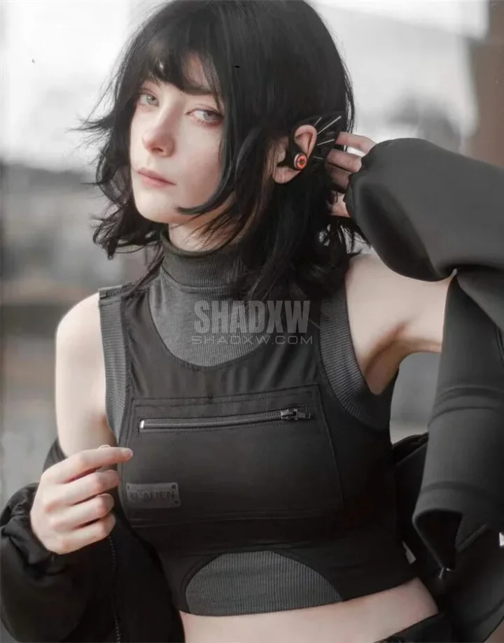 From the moment you lay eyes on this tank top, the future of fashion becomes palpable. The high-neck design evokes a sense of urban sophistication, while the integrated zip pocket adds a layer of practicality unseen in traditional tank tops.