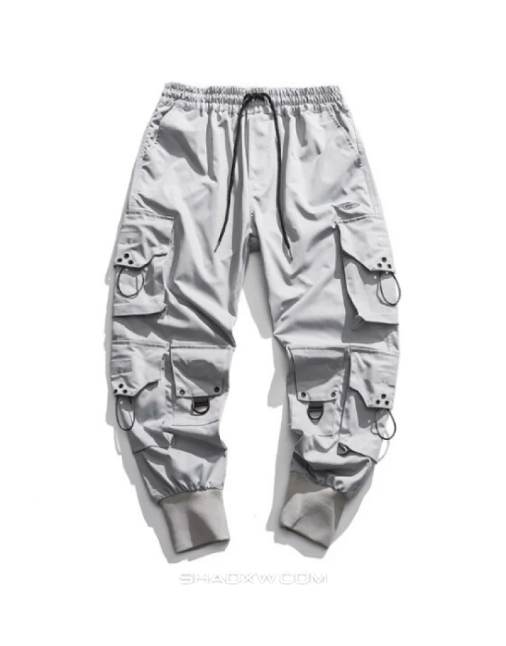 Characterized by a loose fit with elastic ankles, these pants perfectly combine the useful with the pleasant thanks to its comfortable cut and its many pockets. Available in black or gray color, these technical pants are ideal to complete your techwear outfit with style.
